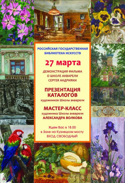 27 марта в 18.00 презентация каталогов художников Школы акварели и Мастер-класс А. Волкова