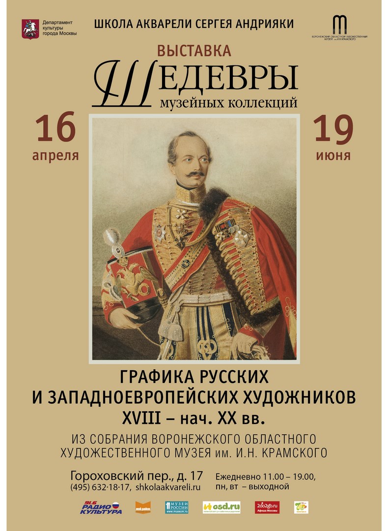 На экспозиции будет представлено 110 музейных предметов графики русских и западноевропейских художников XVIII – начала XX вв. Среди них акварели и рисунки известных художников: Валентина Серова, Алексея Боголюбова, Александра Бенуа, Альберта Бенуа, Владимира Гау, Владимира и Константина Маковских, Александра Клиндера, Владимира Аммона, Константина Трутовского, Ивана Крамского, Константина Кавтарадзе, Николая Дмитриева-Оренбургского. Дополняют выставку офорты Ивана и Алексея Зубовых, Питера Пикарта, Адриана Шхонебека и др. Зрители увидят работы замечательных воронежских художников Александра Бучкури, Сергея Павлова и Федора Чурикова.